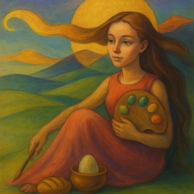 пишет картину ,