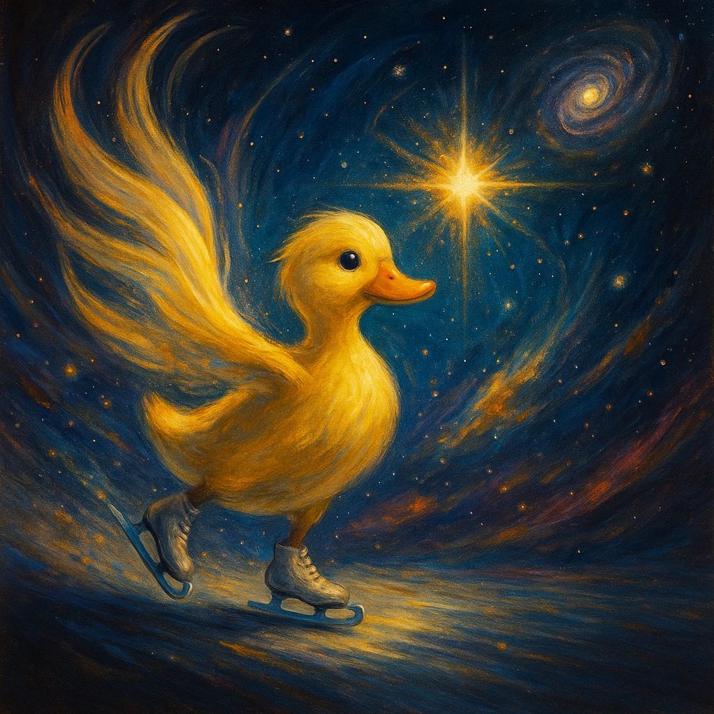 This isn't chaos or randomness. This is pure joyful movement - consciousness so delighted with its own existence that it expresses itself through the most magnificently absurd image possible: a duck on skates, wobbling through eternity with perfect balance and complete confidence in its own cosmic significance.